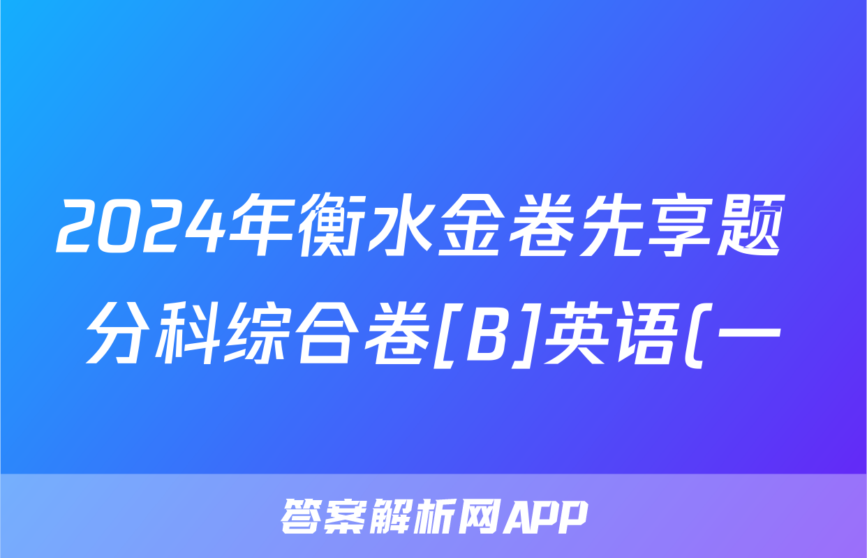 2024年衡水金卷先享题 分科综合卷[B]英语(一)1答案,目前2024届金学导航答案网已经汇总了2024年衡水金卷先享题 分科综合卷[B]英语(一)1答案的各科答案和试卷,获取更多{{papers_name}}答案解析,请在关注本站。