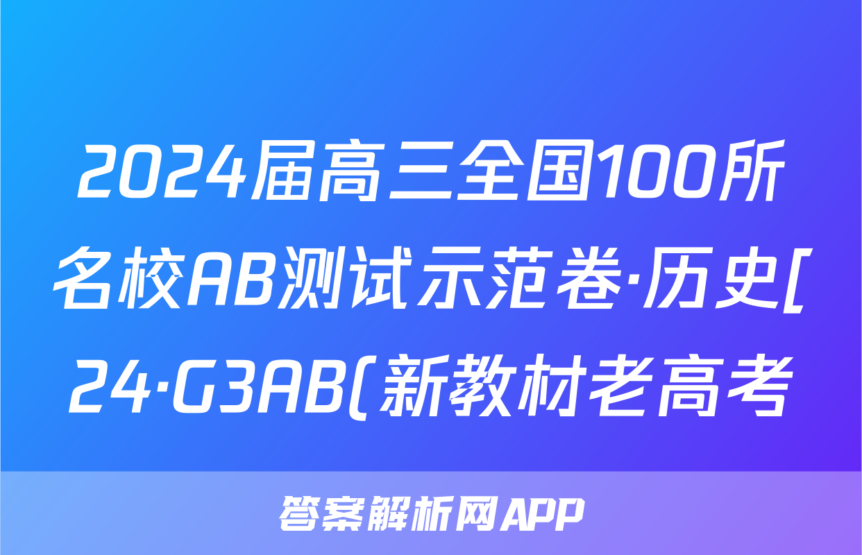 2024届高三全国100所名校AB测试示范卷·历史[24·G3AB(新教材老高考)·历史-R-必考-HUB]八试题,目前2024届金学导航答案网已经汇总了2024届高三全国100所名校AB测试示范卷·历史[24·G3AB(新教材老高考)·历史-R-必考-HUB]八试题的各科答案和试卷,获取更多{{papers_name}}答案解析,请在关注本站。