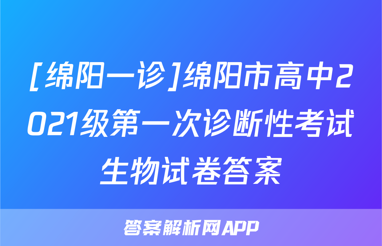 [绵阳一诊]绵阳市高中2021级第一次诊断性考试生物试卷答案,目前2024届金学导航答案网已经汇总了[绵阳一诊]绵阳市高中2021级第一次诊断性考试生物试卷答案的各科答案和试卷,获取更多{{papers_name}}答案解析,请在关注本站。