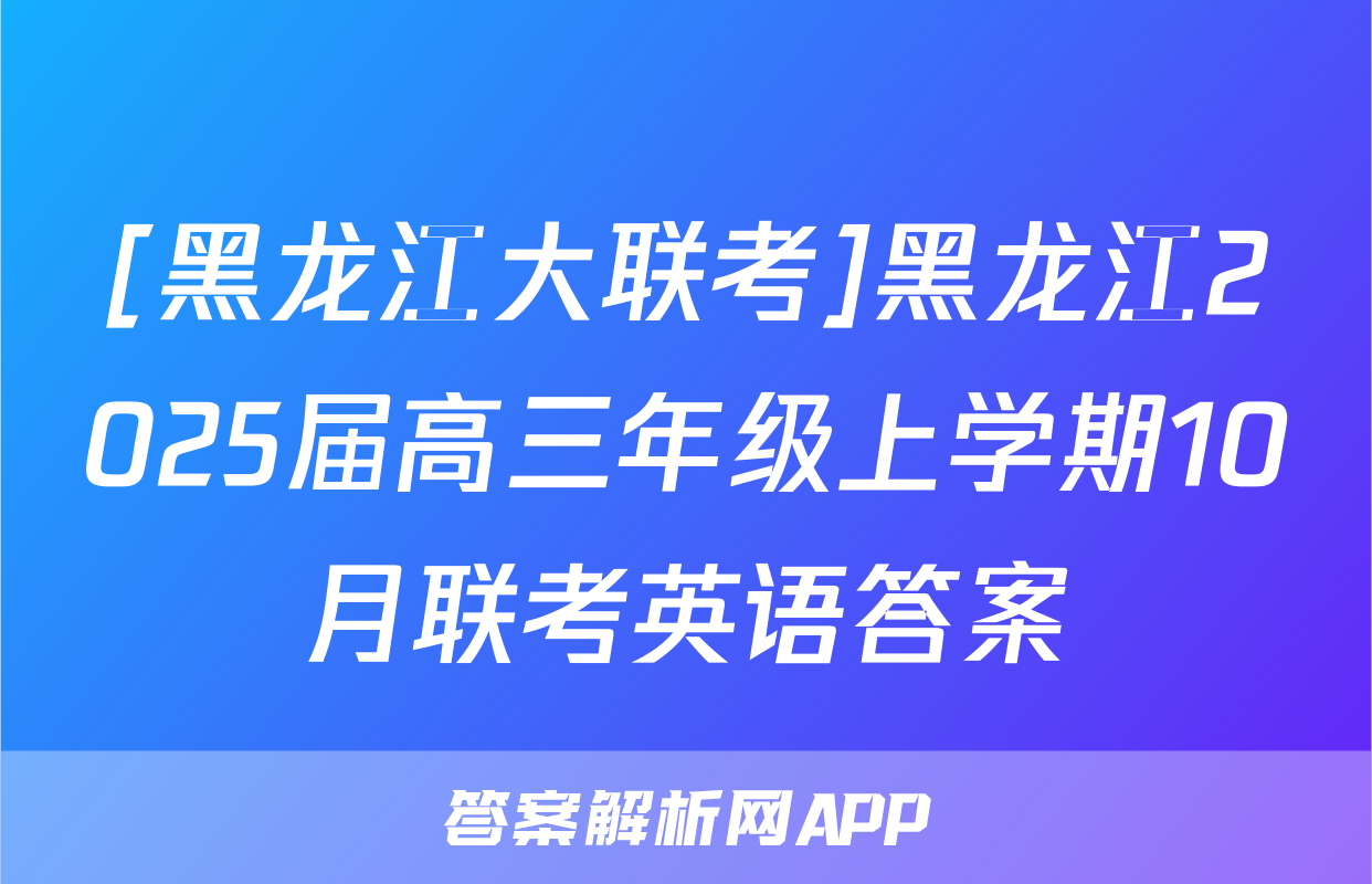 [黑龙江大联考]黑龙江2025届高三年级上学期10月联考英语答案,目前2024届金学导航答案网已经汇总了[黑龙江大联考]黑龙江2025届高三年级上学期10月联考英语答案的各科答案和试卷,获取更多{{papers_name}}答案解析,请在关注本站。