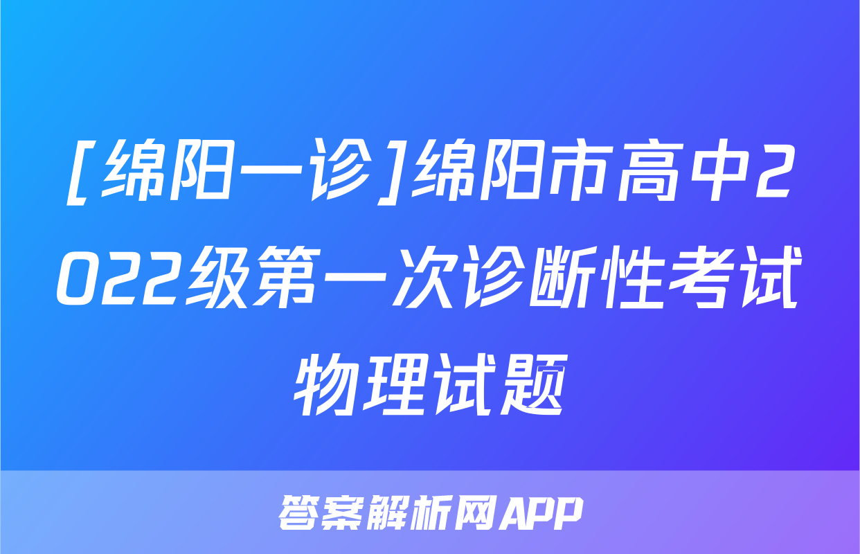 [绵阳一诊]绵阳市高中2022级第一次诊断性考试物理试题