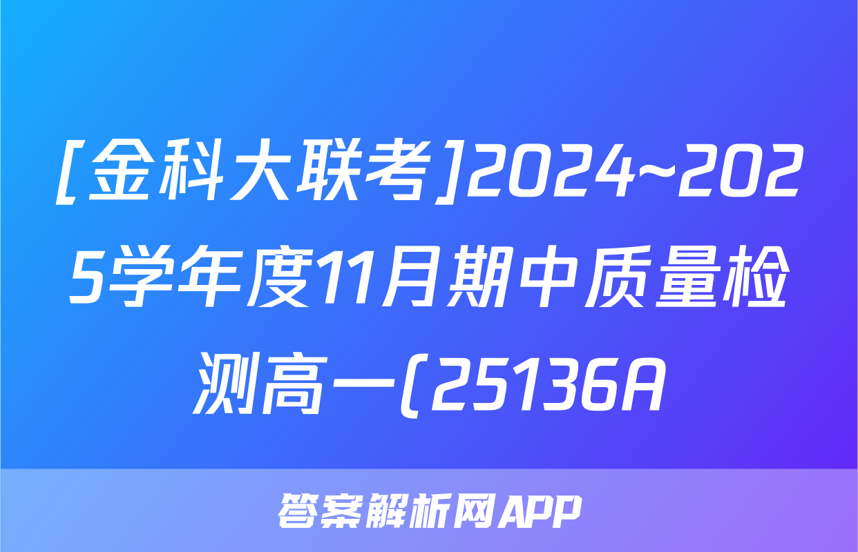 [金科大联考]2024~2025学年度11月期中质量检测高一(25136A)化学-B试题,目前2024届金学导航答案网已经汇总了[金科大联考]2024~2025学年度11月期中质量检测高一(25136A)化学-B试题的各科答案和试卷,获取更多{{papers_name}}答案解析,请在关注本站。